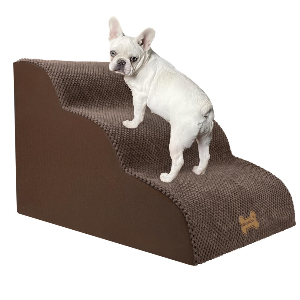 Nepfaivy Dog Steps Stairs for Bed - Non-Slip Pet Stairs for Small Dogs and Cats, 3-Steps Dog Ramp for Sofa with High Density Foam and Removable Cover,