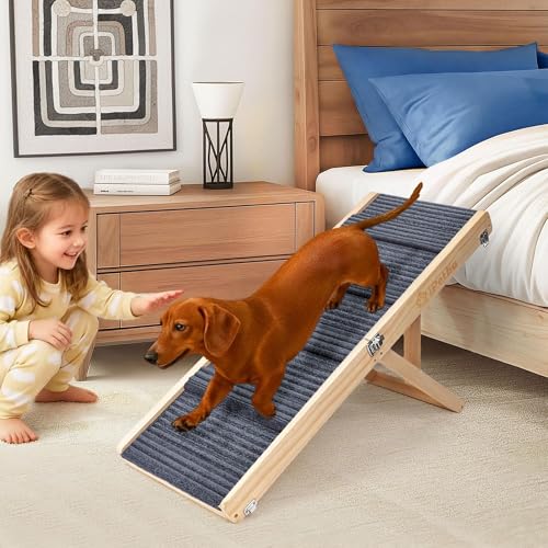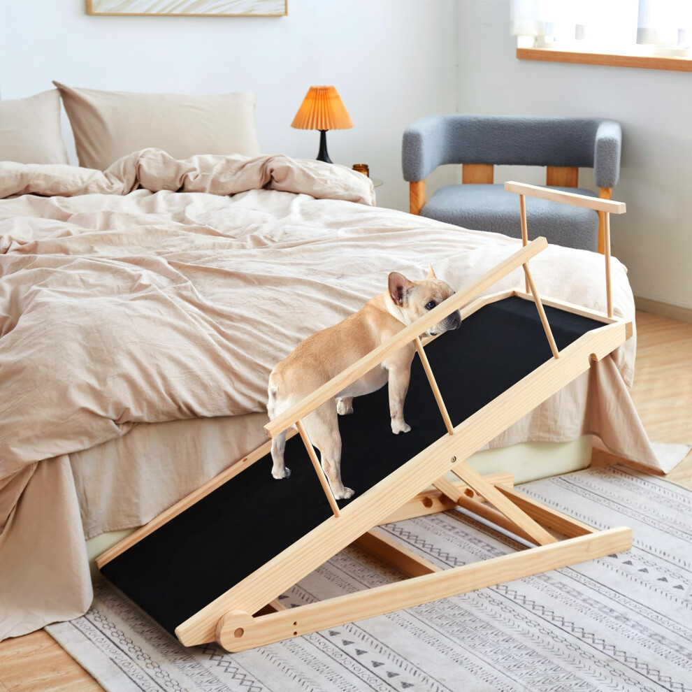 Wooden Dog Ramp for Bed And Sofa, Ramp for Dogs to Get into Bed with Non-slip Surface, Portable Indoor Ramp for Small And Older Dogs