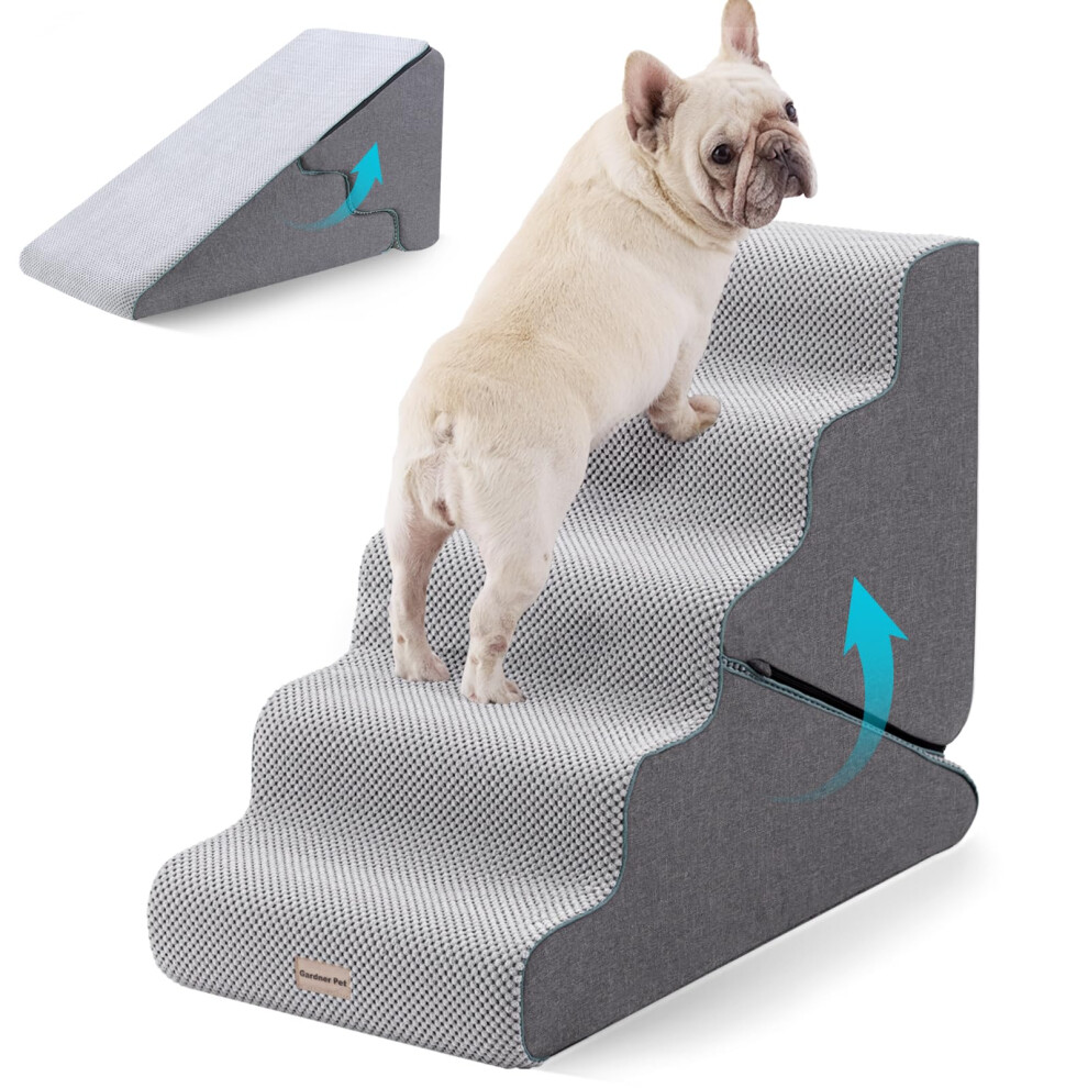 Gardner Pet 2-in-1 Dog Steps for Bed, Adjustable 4-Steps High Density Foam Dog Ramp for Sofa, Water Resistant Pet Stairs with Non Slip Bottom,