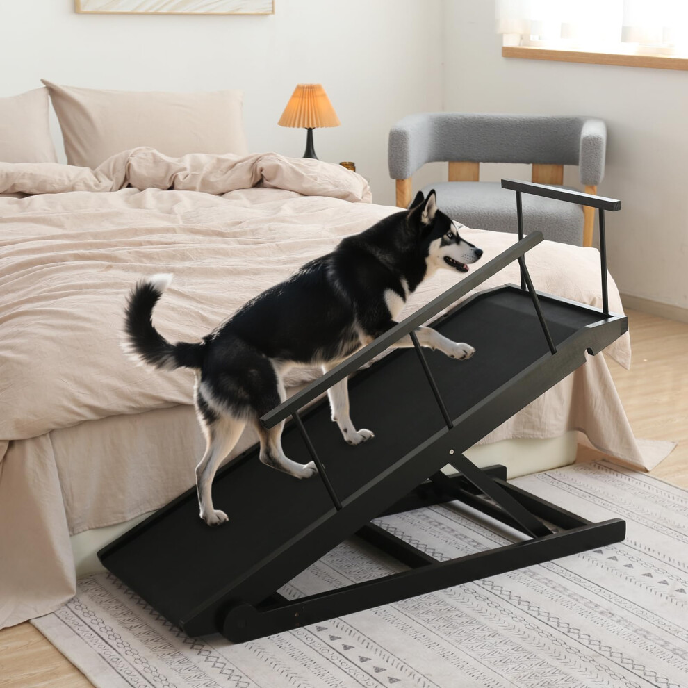 Dog Ramp for Sofa, Bed Or Car, Wooden Ramp for Dogs, Load Capacity up to 90 Kg, 3-way Height Adjustable, Excellent Slip Resistance