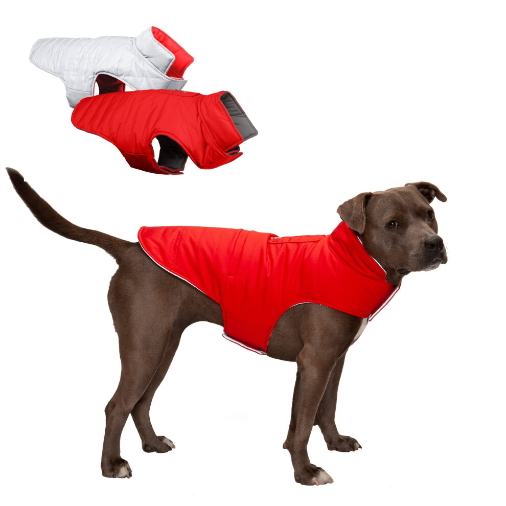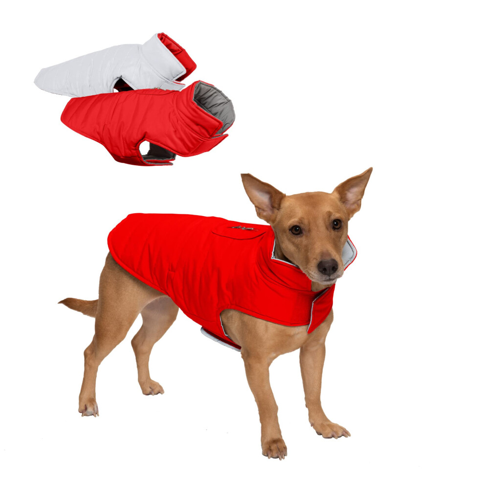 Furhaven Small Dog Coat Water-Repellent Reversible Reflective Puffer Jacket, Washable - Red, Small