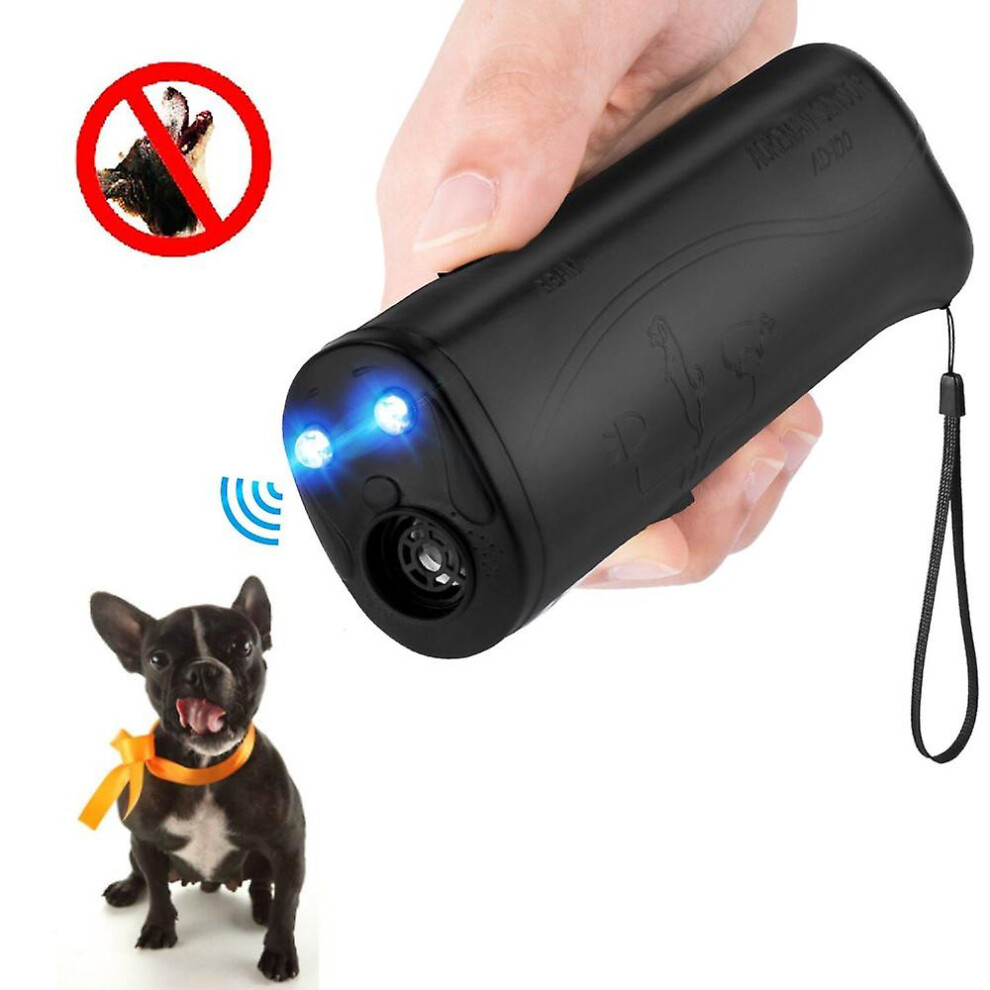 Handheld Dog Repellent, Ultrasonic Dog Trainer, Portable Electronic Dog Deterrent With Bright Led Flashlight Waterproof (battery Included, Black)