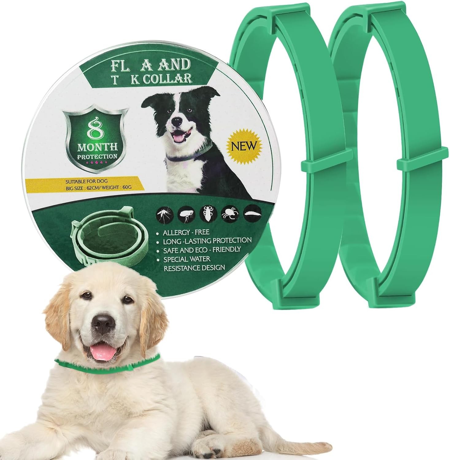 Dog Insect Repellent Collars - 2Pcs Safe Waterproof Adjustable Collar for Dogs