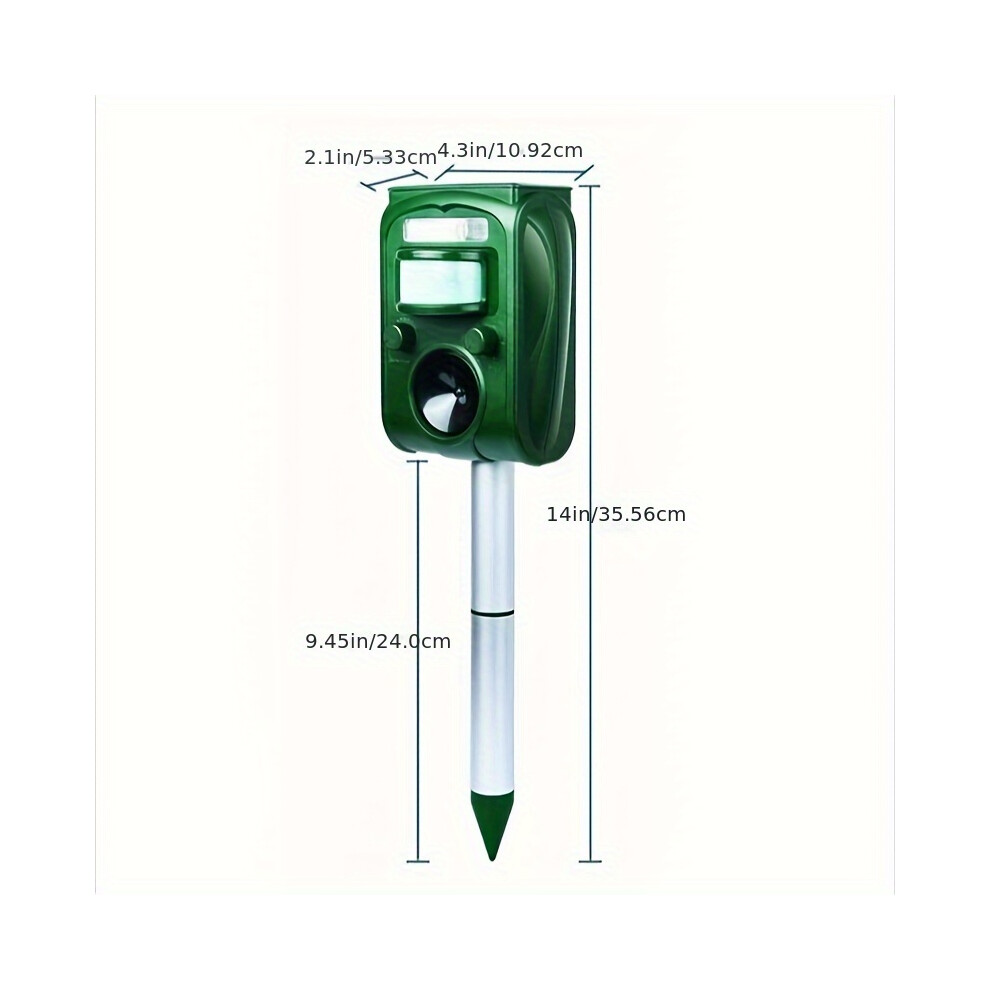 (Green37cm(H)*11cm(W)*5.33cm(L)) 1pc Ultrasonic Solar Animal Repeller, Wireless Motion Detection, LED Flashing Light, Dog, Cat Repellent
