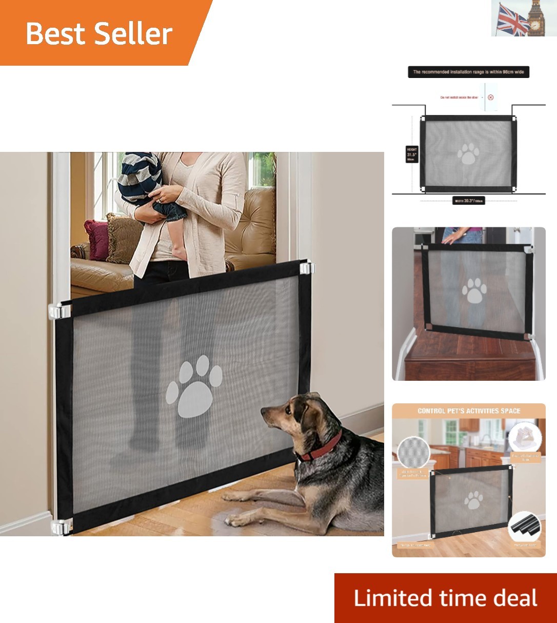 Magic Dog Gate Safety Guard 100x80cm - Lockable, Easy to Install Mesh Fence