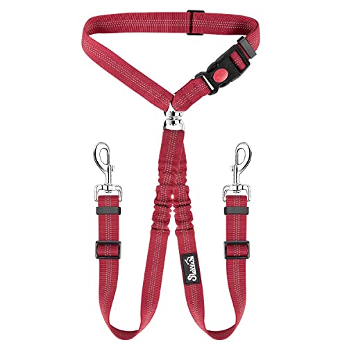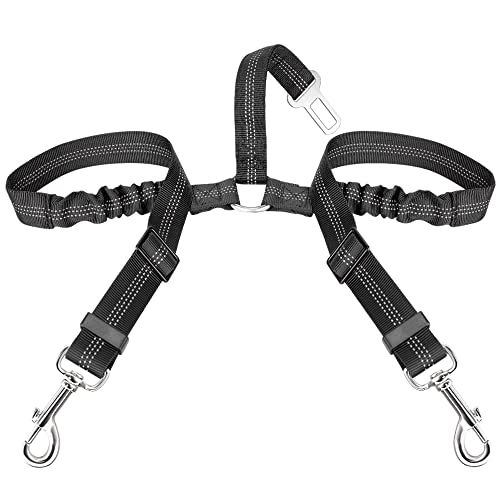 SlowTon Double Dog Seat Belt, Adjustable Headrest Dog Car Harness with Anti-shock Elastic Bungee Buffer, 2-in-1 Pet Cars Safety Seatbelt Restraint and Dog Leash Lead for Travel Walking Daily Use