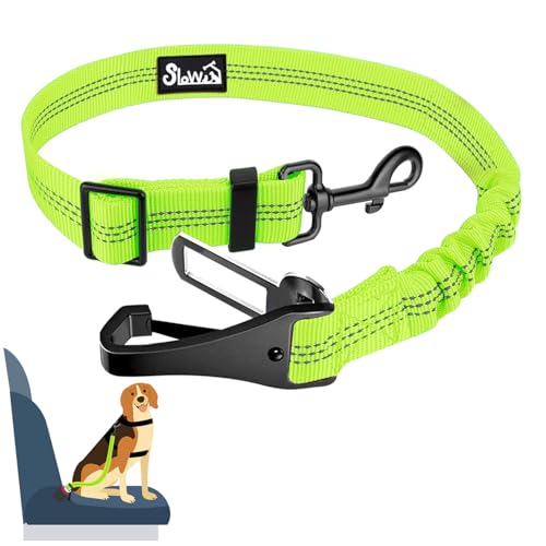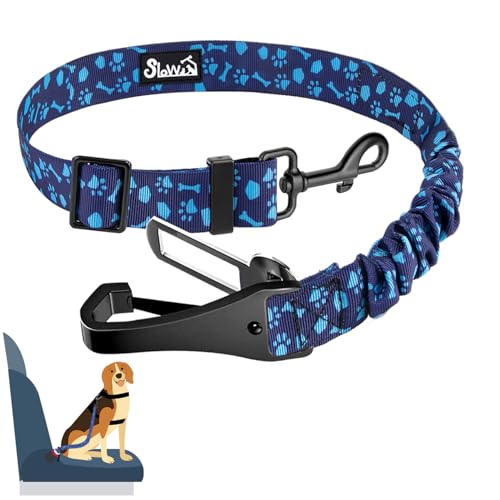 SlowTon Dog Seatbelt, 2 Pack Dog Seat Belt Car Leash Adjustable Elastic Bungee Buffer Heavy Duty Nylon Reflective Pet Safety Tether Connect to Dog Harness for Travel Riding in Vehicle