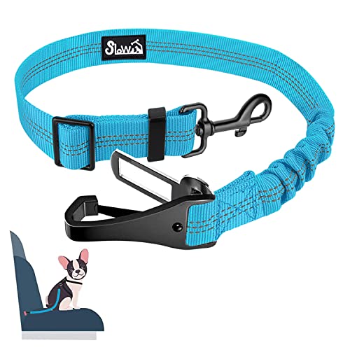 SlowTon Dog Seat Belt, 2 Packs Latch Bar & Isofix Dog Car Seatbelt with Anti-Shock Elastic Bungee Buffer, Adjustable Reflective Pet Car Safety Belt Tether for Dog Harness Universal Vehicle Travel
