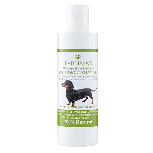 Paddipaws Antifungal & Antibacterial Dog Shampoo, 100% Natural Skin & Coat Care Shampoo for Itchy Dogs, Yeast, Ringworm, Dermatitis & Pyoderma, Paraben & SLS Free 250ml