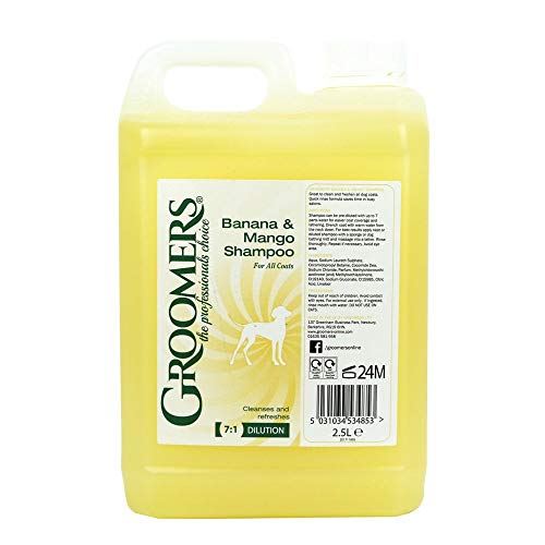 Groomers Banana and Mango Dog Shampoo, 2.5 Litre - Suitable For Any Coat Type & Frequent Use - For Groomers & Pet Owners - Made in the UK
