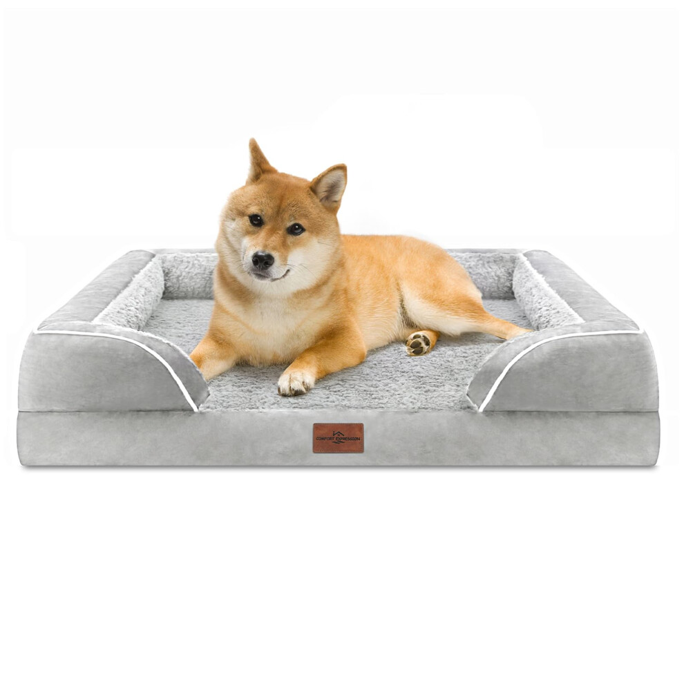 Comfort Expression Large Dog Beds Waterproof Orthopedic Foam Dog Sofa Beds Comfy Pet Bed with Washable Removable Cover & Non-Slip Bottom(Large Grey)