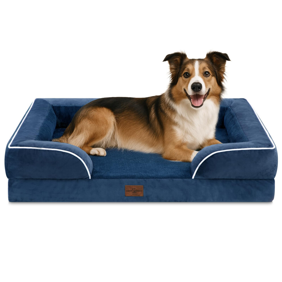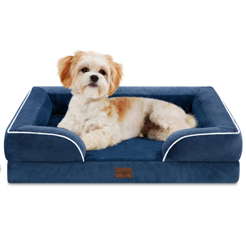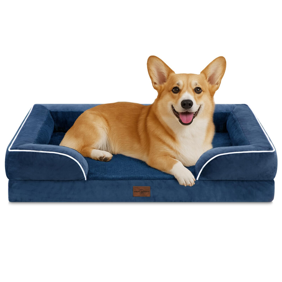 Comfort Expression Large Dog Beds Waterproof Orthopedic Foam Dog Sofa Beds Comfy Pet Bed with Washable Removable Cover & Non-Slip Bottom(Large Navy Bl