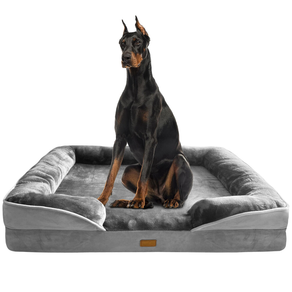 EHEYCIGA Memory Foam Dog Beds XXL, Orthopedic Giant Dog Beds Sofa with Sides and Waterproof Liner, Pet Couch with Washable Removable Cover and Non-Slip Bottom, 122x89x19cm, Dark Grey