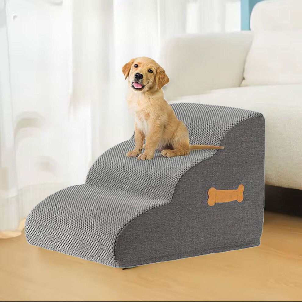 Dog Stairs 3 Steps for Small Dogs Cats Grey, Dog Steps Pet Ramp Ladder for Sofa Bed Non-Slip Foam with Removable Washable Cover, Send Lint Sticky
