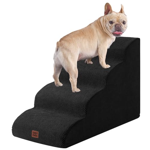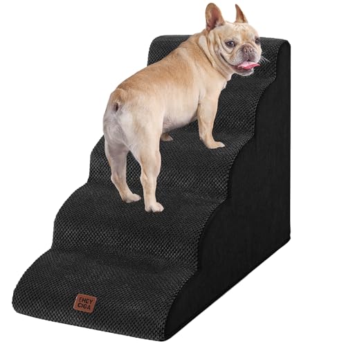 EHEYCIGA Curved Dog Steps for Bed, 4-Step Dog Stairs for Sofa, High Density Foam Pet Steps for Small Dogs and Cats, Pet Stairs for High Bed, Non-Slip Dog Ramp with Washable Cover, 72x40x50cm, Black