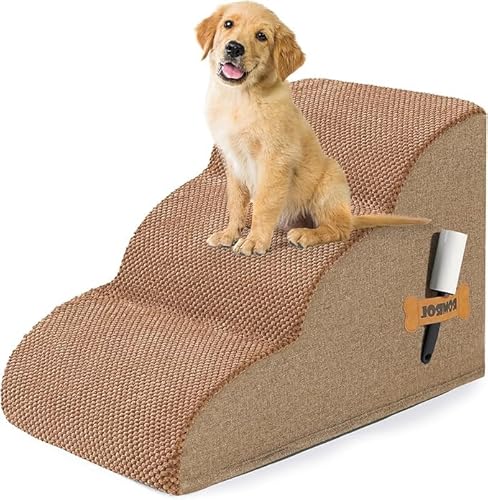ROMROL Dog Stairs for Small Dogs, 3-Step Non-Slip Pet Ramp for Bed & Sofa – High-Density Foam, Removable Washable Cover – Soft Dog Steps for Puppies, Senior Dogs & Cats, 58x38x38cm, Brown