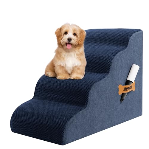 ROMROL Dog Stairs for Small Dogs, 4-Step Non-Slip Pet Ramp for Bed & Sofa – High-Density Foam, Removable Washable Cover – Soft Dog Steps for Puppies, Senior Dogs & Cats, 58x38x38cm, Navy