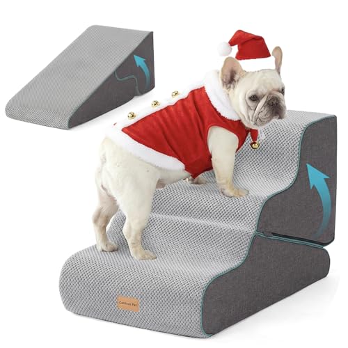 Dripex Curved Dog Stairs for Beds Couches, 3-Step Dog Steps with Durable Non-Slip Fabric Cover, Dog Slope Stairs for Small Dogs, Cats or Pets Friendly, Grey