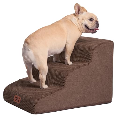 EHEYCIGA Curved Dog Steps for Bed, 3-Step Dog Stairs for Sofa, High Density Foam Pet Steps for Small Dogs and Cats, Pet Stairs for Couch, Non-Slip Dog Ramp with Washable Cover, 40x57x40cm, Brown