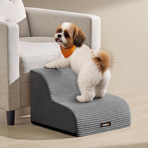 Feandrea 2-Step Dog Stairs, Corduroy Dog Steps for Bed, Sofa, Waterproof Pet Stairs with Anti-Slip Designs, Gentle Slope, Removable Washable Cover, Handle, Slate Grey PPS002GN01