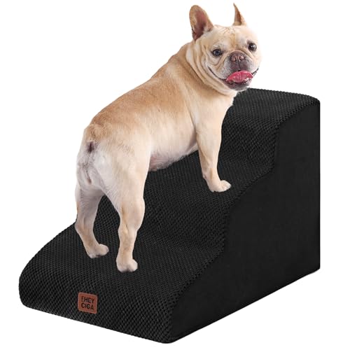 EHEYCIGA Curved Dog Steps for Bed, 3-Step Dog Stairs for Sofa, High Density Foam Pet Steps for Small Dogs and Cats, Pet Stairs for Couch, Non-Slip Dog Ramp with Washable Cover, 40x57x40cm, Black