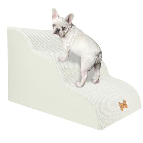 Nepfaivy Dog Steps Stairs for Bed - Non-Slip Pet Stairs for Small Dogs and Cats, 3-Steps Dog Ramp for Sofa with High Density Foam and Removable Cover, 45x40x34cm