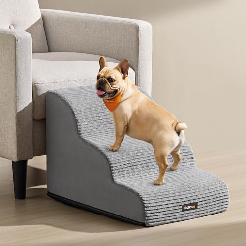 Feandrea 3-Step Dog Stairs, Dog Steps for Bed, Sofa, Waterproof Pet Stairs with Anti-Slip Designs, Gentle Slope, Removable Washable Cover, Handle, Dove Grey PPS003G01
