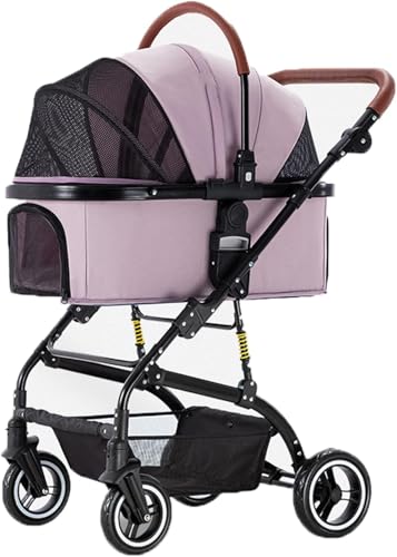 AISNXOQI Dog Stroller For Medium Dogs Small Dogs 4 Wheel Collapsible Storage Cup Holder Adjustable Push Handle Separate Cart Pet Travel Supplies, Pink
