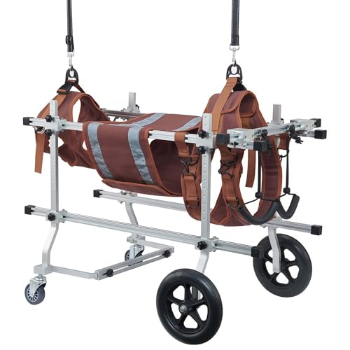 RVUEM Medium and Large Dog Wheelchairs, 4-Wheeled Dog Disability Assistance Vehicles, Pet Rehabilitation Training, Light Weight Dog Stroller, Aluminum,Brown,L