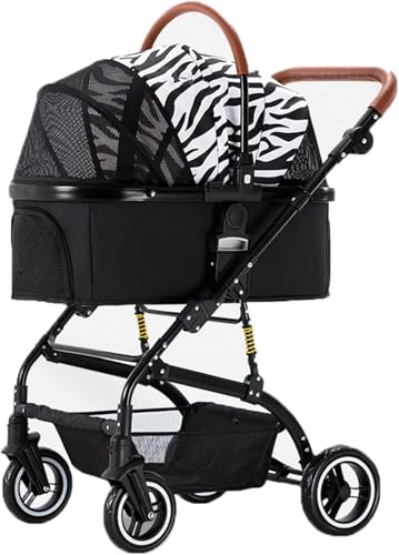 AISNXOQI Dog Stroller For Medium Dogs Small Dogs 4 Wheel Collapsible Storage Cup Holder Adjustable Push Handle Separate Cart Pet Travel Supplies, Zebra