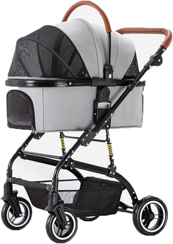 AISNXOQI Dog Stroller For Medium Dogs Small Dogs 4 Wheel Collapsible Storage Cup Holder Adjustable Push Handle Separate Cart Pet Travel Supplies, Grey