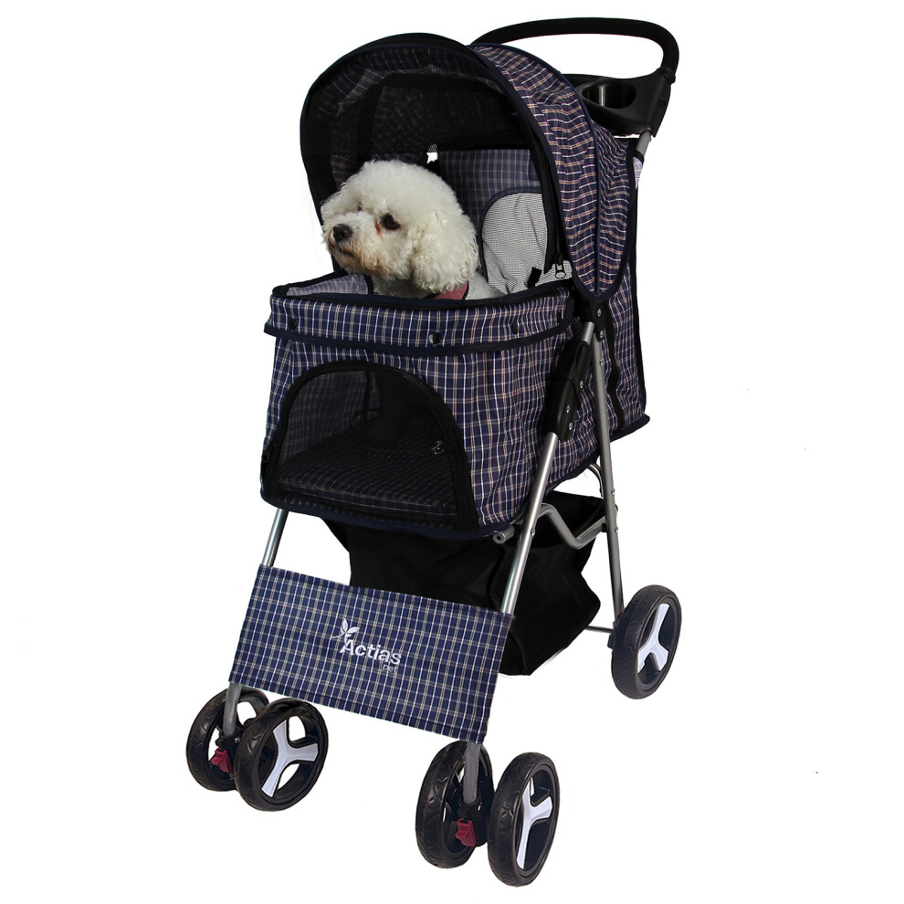 Pet Dog Puppy Stroller Pram Pushchair in Blue tartan