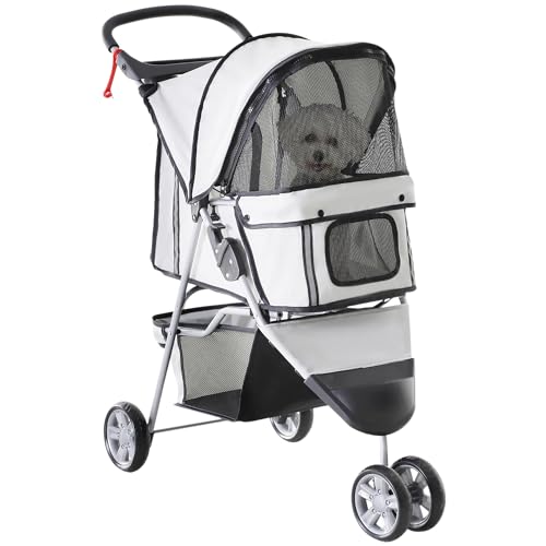 Pawhut Dog Stroller Pet Travel Stroller Cat Dog Pushchair Trolley Puppy Jogger Carrier Three Wheels (grey)