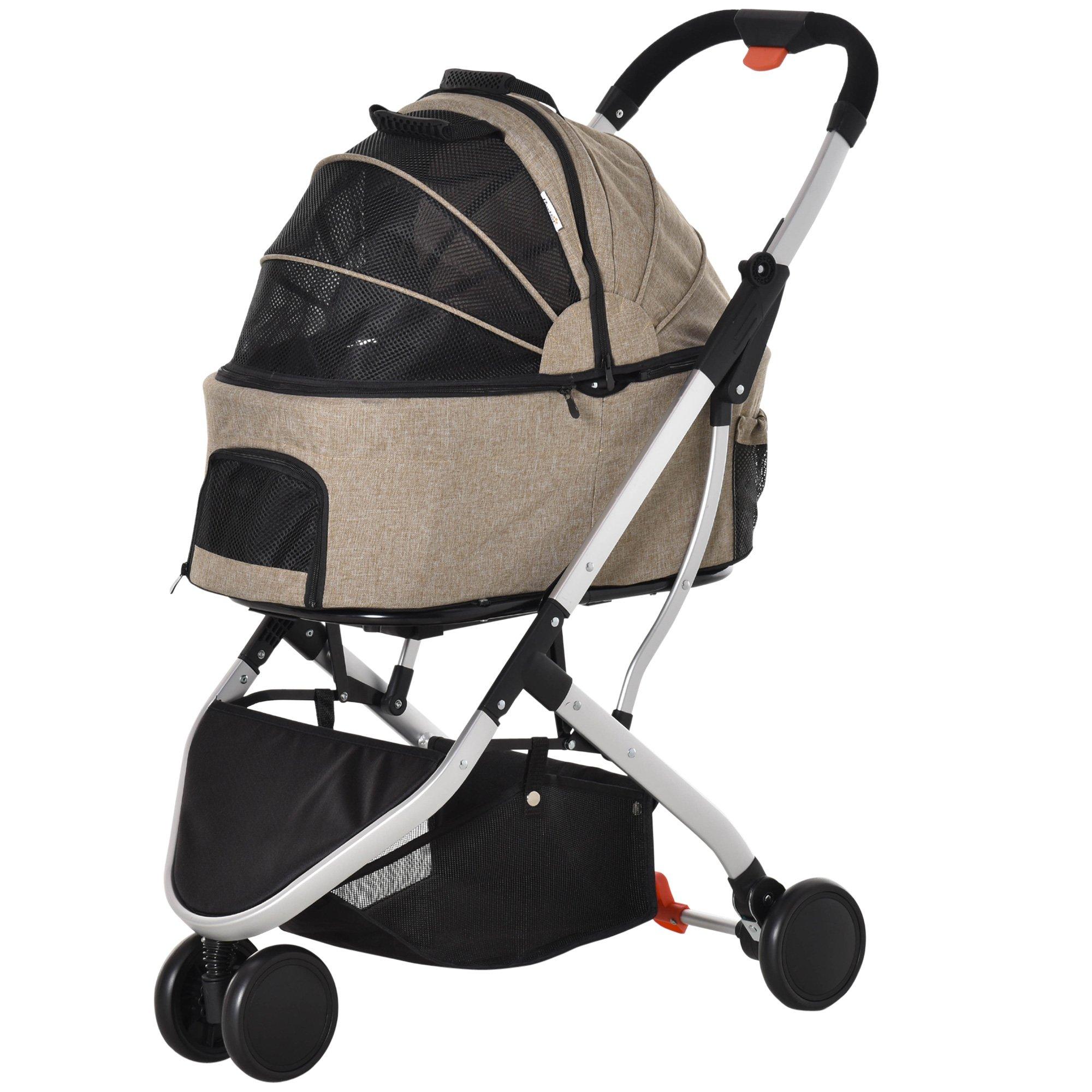 Pawhut Dog Pram Pet Travel Stroller Dog Pushchair W/three Wheels-coffee