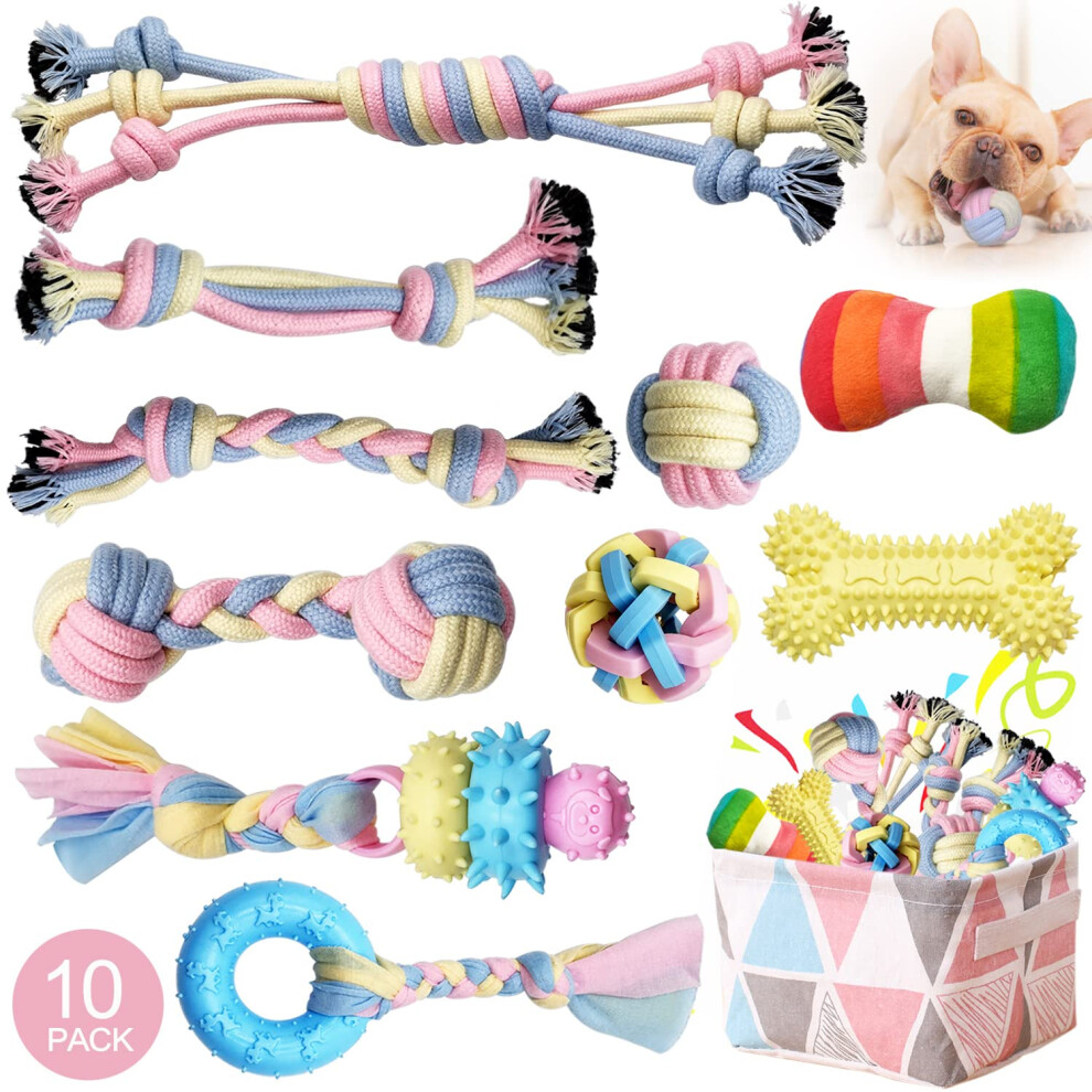 Fur Bone 10 Pack Dog Chew Toys Puppy Toys Dog Toys Boredom Indestructible Dog Toys Rope Toys Squeaky Toy Dog Teething Toys Small & Medium Dogs Dog
