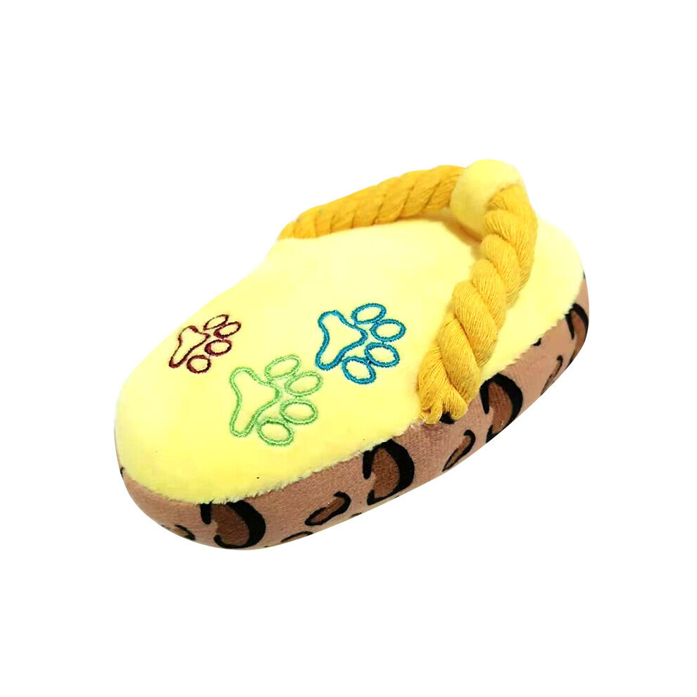 (yellow) Plush Sound Slippers Dog Teething Cleaning Interactive Toys
