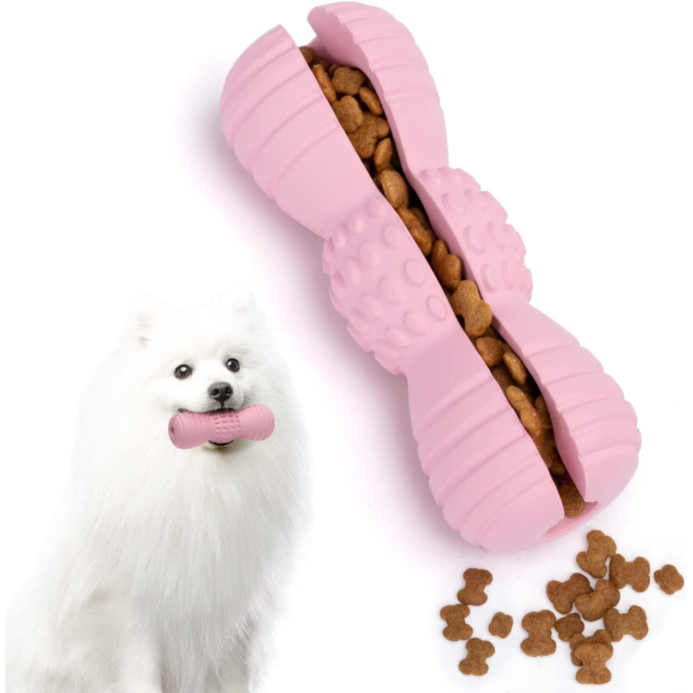 Dog Chew Toys,Tough Stick Stuffable Snack Dispensing Dog Toys,Durable Natural Rubber Teeth Cleaning Dog Teething Toys,1.7 * 1.7 * 5 inch Pink