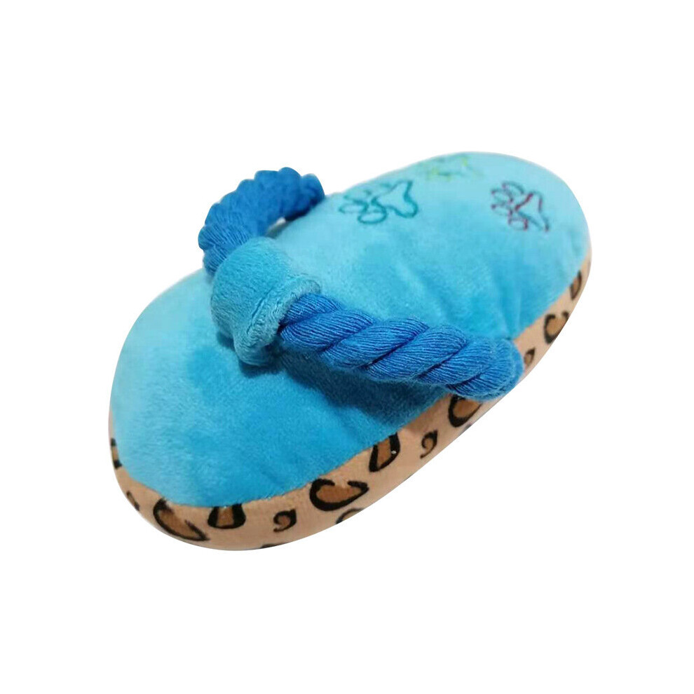 (blue) Plush Sound Slippers Dog Teething Cleaning Interactive Toys