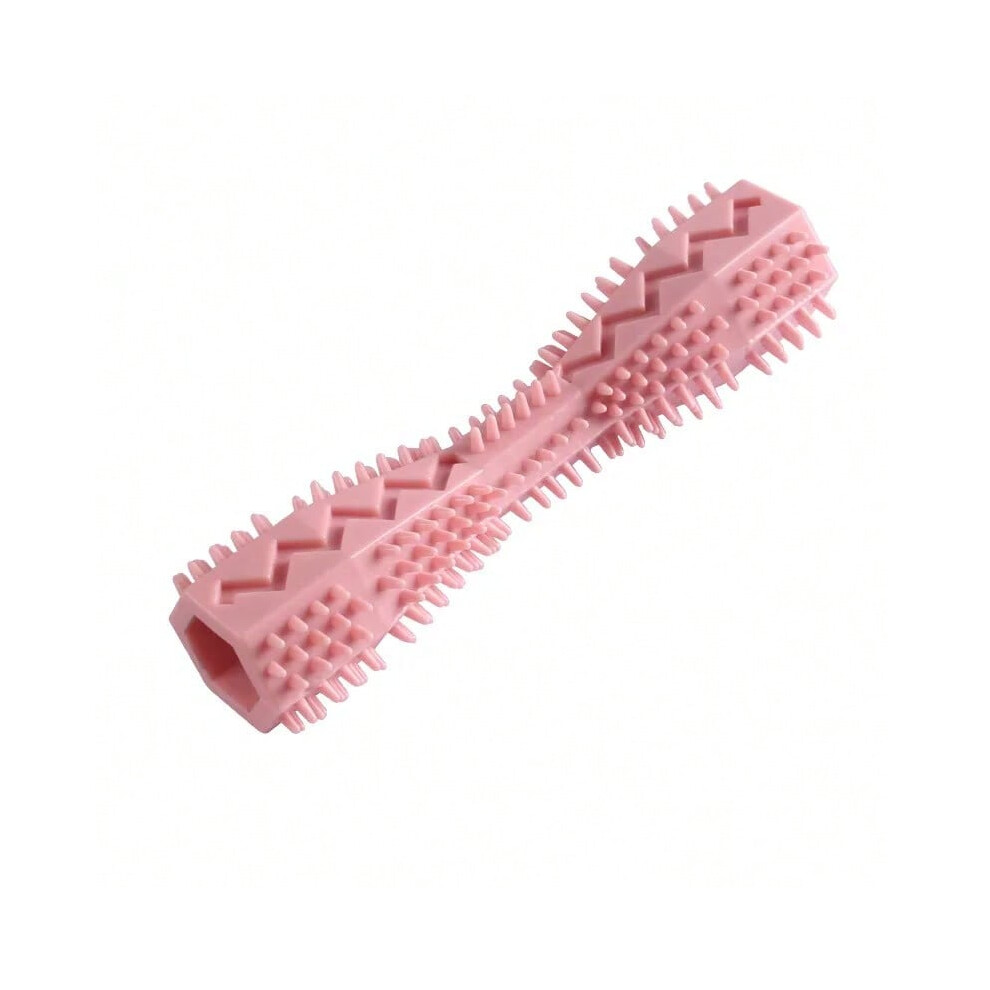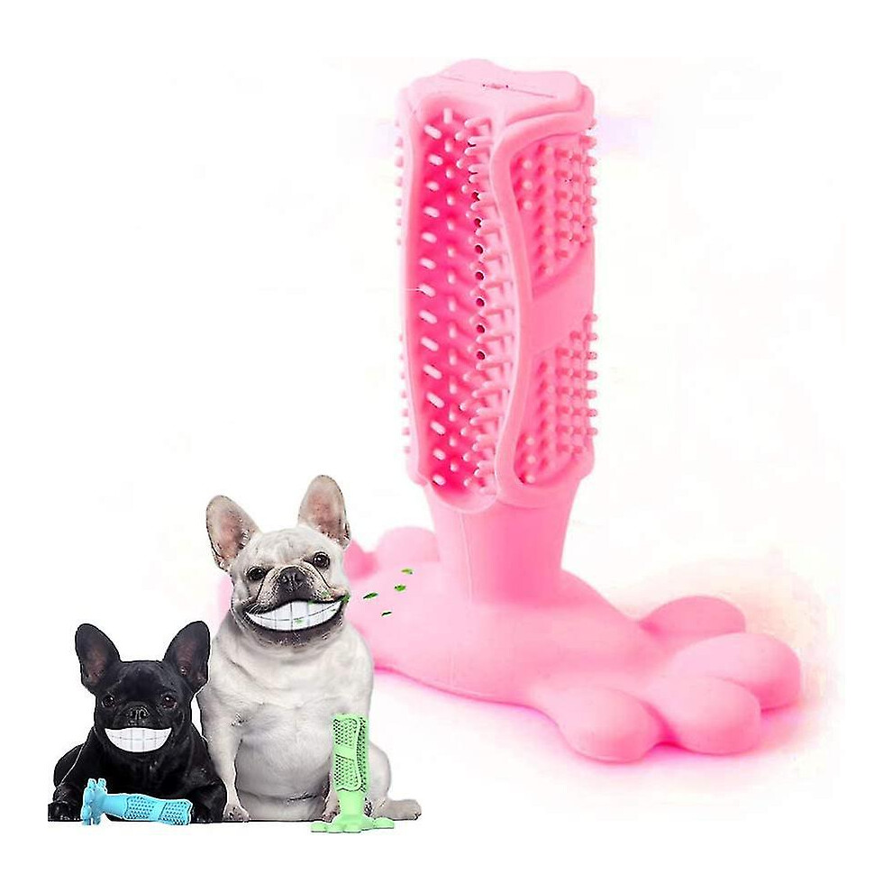 (Pink) Dog Toothbrush Durable Dog Chew Toy Stick Soft Rubber Tooth Cleaning Point Massage Toothpaste Pet Toothbrush Molar Pet Supplies