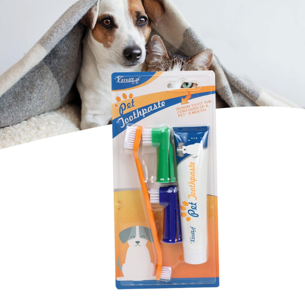 Dental Cleaning Tools, Pet Oral Care Kit With Ergonomic Pet Toothbrush, Enzymatic Dog Toothpaste For Bad Breath, Finger Toothbrush Set, Ideal For Dail