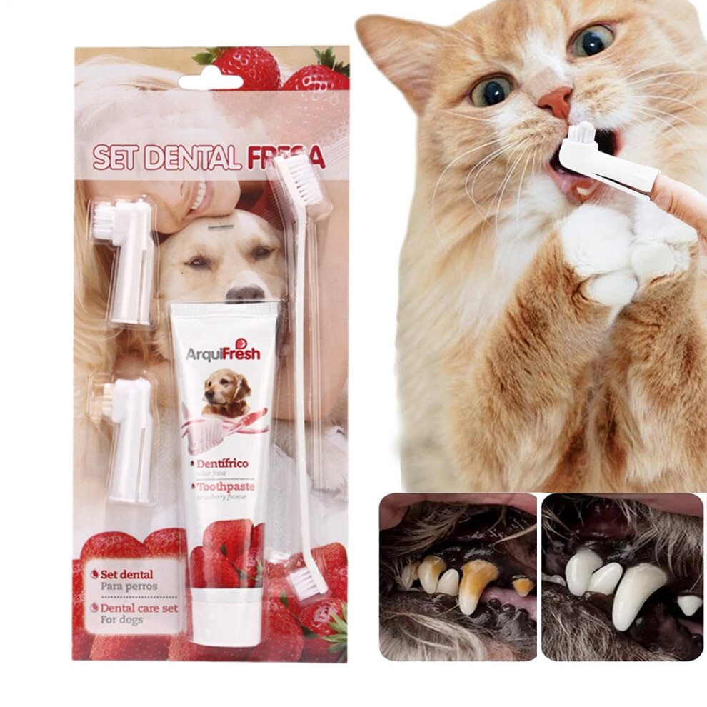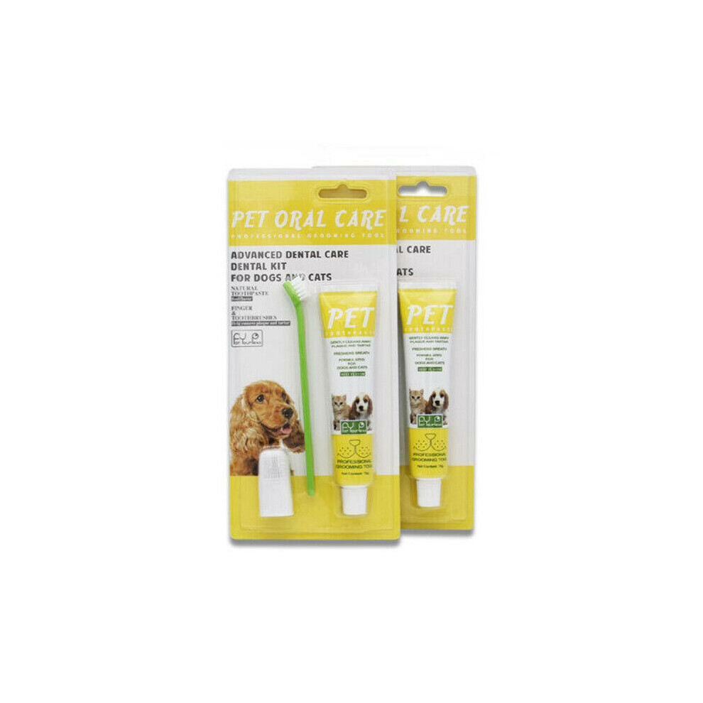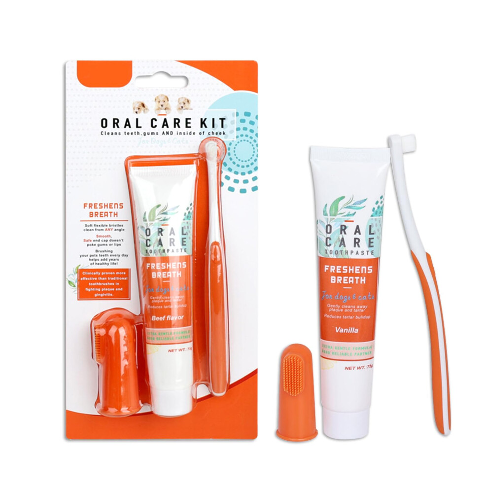 (Multicolor) Dog And Cats Toothpaste Kit With Toothbrush 75g And Finger Brush Helps Freshen Breath
