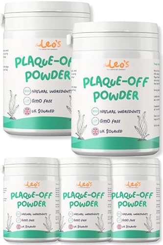Leo's Plaque Off Powder for Dogs & Cats | 5 x 200g | Pet Teeth Cleaning | Cat & Dog Breath Freshener Dental Products 100% Natural | No Dog Toothbrush or Dog Toothpaste | Plaque Remover for Dogs & Cats