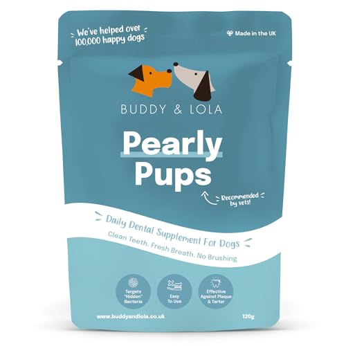 Buddy & Lola Pearly Pups Plaque Off Dog Teeth Cleaning Products & Dog Breath Freshener - Daily Plaque Remover Without A Dog Toothbrush Or Dog Toothpaste - Dental Dog Breath Freshener (120g)