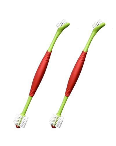ETIALURE 2PCS Double Headed Dog Toothbrush, Dual Ended 360 Degree Cat Teeth Cleaning Products, Dental Cleaning with Dog Toothpaste and Plaque Remover (Green * 2)
