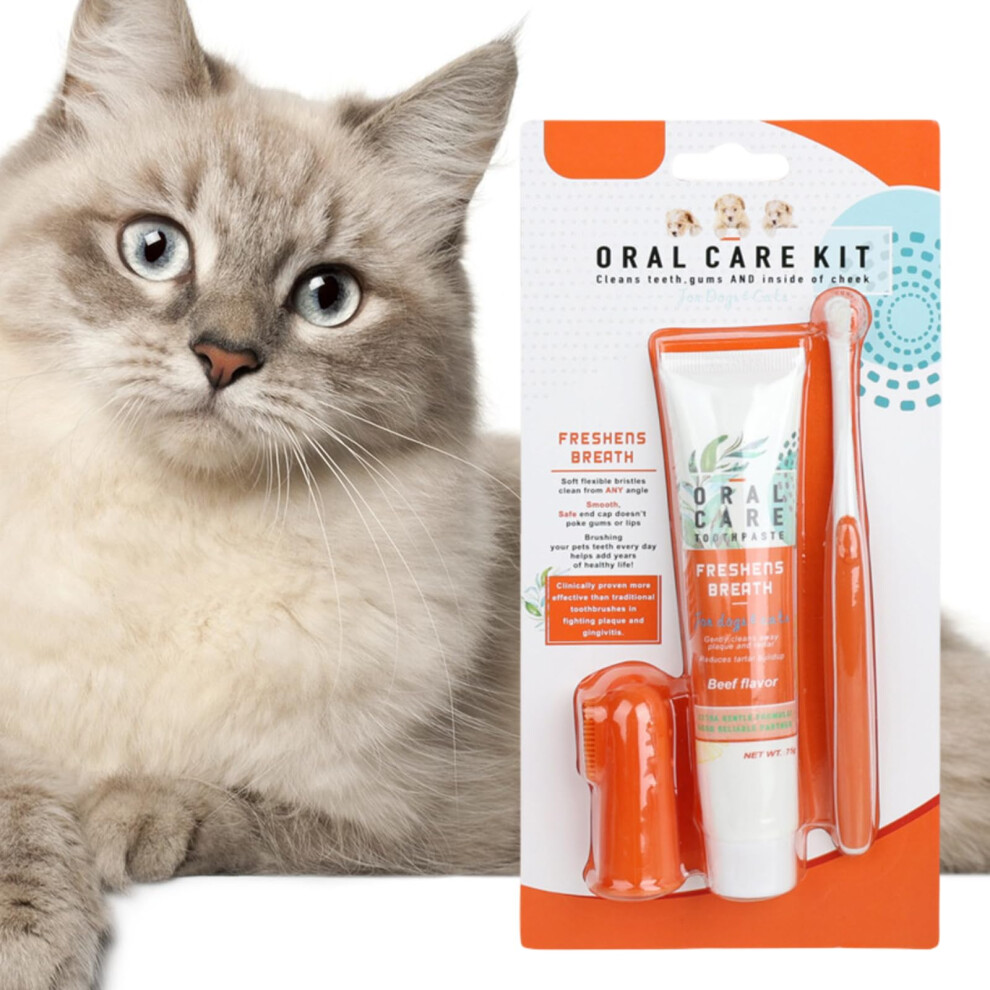 1X Pet Dog Cat Cleaning Toothpaste+Toothbrush+ Back Up Brush Set Beef Flavour