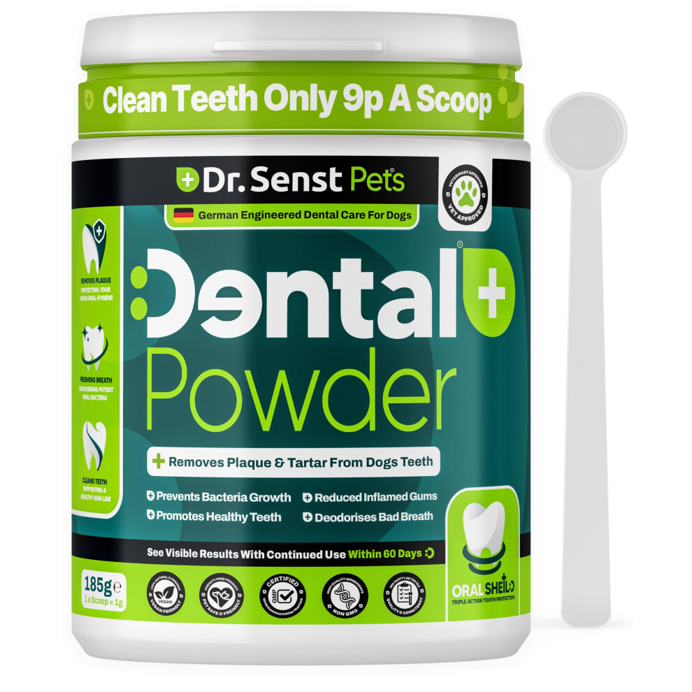 Dr Senst Plaque Off Powder Dogs 185G Dog Teeth Cleaning Products & Dog Breath Freshener - No Dog Toothbrush and Toothpaste | Seaweed Dog Plaque