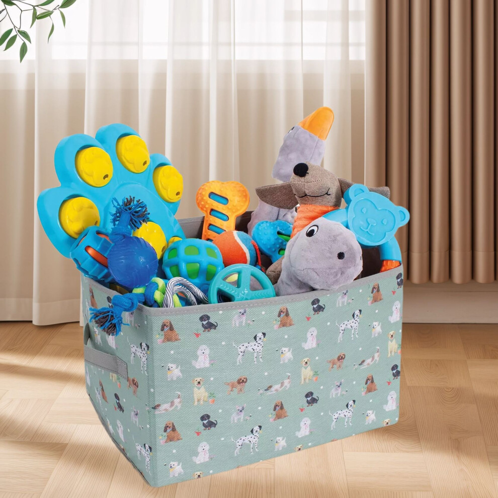 Foldable Dog Toy Storage Box with Handles - 37x25x25cm, Durable Polyester, Adorable Printed Dog Design, Collapsible & Portable