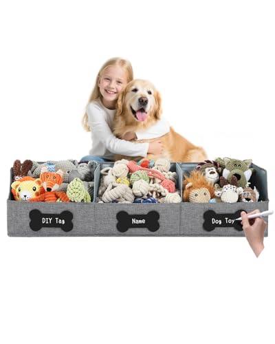 Qozary Dog Toy Storage Box - Large Dog Toy Bin, 3 Grids Dog Toy Storage Basket With Lid, Foldable Storage Bin for Dog Toys, Dog Toy Basket for Pet Supplies, Perfect To Keep Your Dog Toys Organized