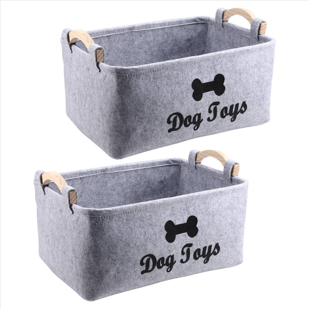 2pcs Dog Toy Storage Box Felt Pet Organizer Container
