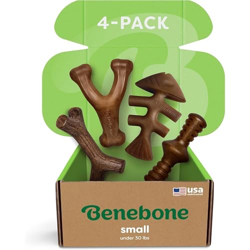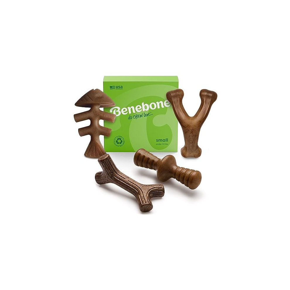 Benebone Indestructible Dog Chew Toy Gift Box for Aggressive Chewers with Wishbone, Fishbone, Stick & Zaggler, Long Lasting Boredom Breakers, 100% Real Flavours, For Small Dogs, Made in the USA.